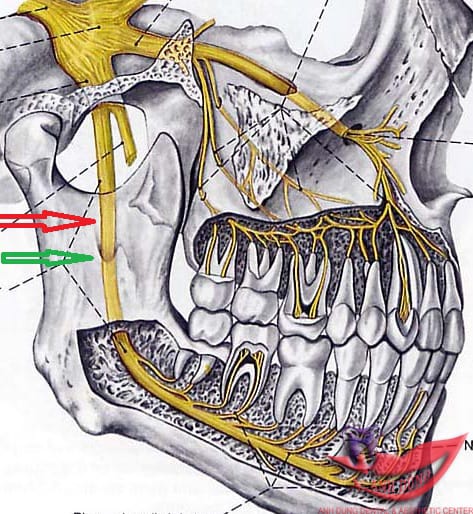 Vai trò của thần kinh huyệt răng dưới là tạo cảm giác cho một nửa cung răng, lợi hàm dưới và một nửa môi dưới. Nó nằm tại ống răng ở trong xương hàm dưới, cách chóp chân răng 6,7 từ 2 – 3mm. Vị trí này rất sát chân răng số 8 hàm dưới. Đặc biệt một số trường hợp, thần kinh răng dưới còn nằm dính vào chân răng khôn hàm dưới.